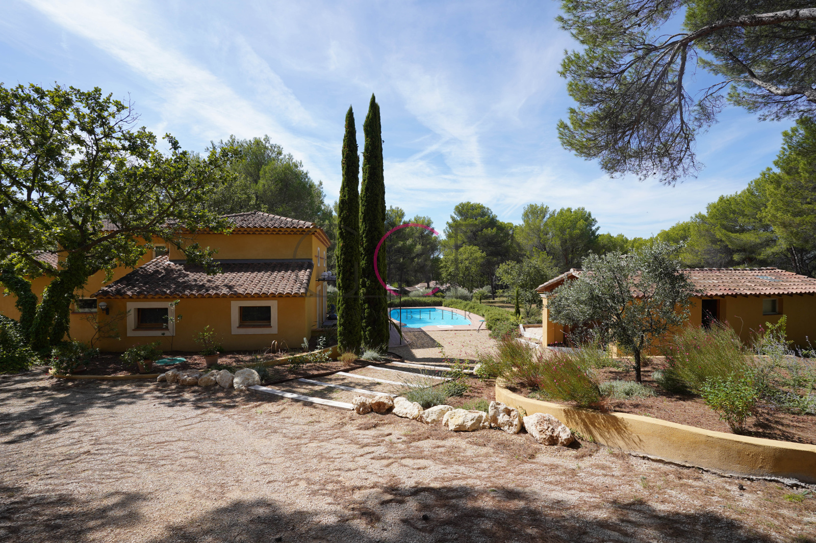 Ventabren (13122)Superbe maison T7 sur 2 étages meublée de 138m² avec un magnifique jardin arboré de 2800 m² planté d'essences variées (pins, oliviers, lauriers-roses…) dans un environnement privilégié de Ventabren, au plus grand calme, en fond d'impasse.
