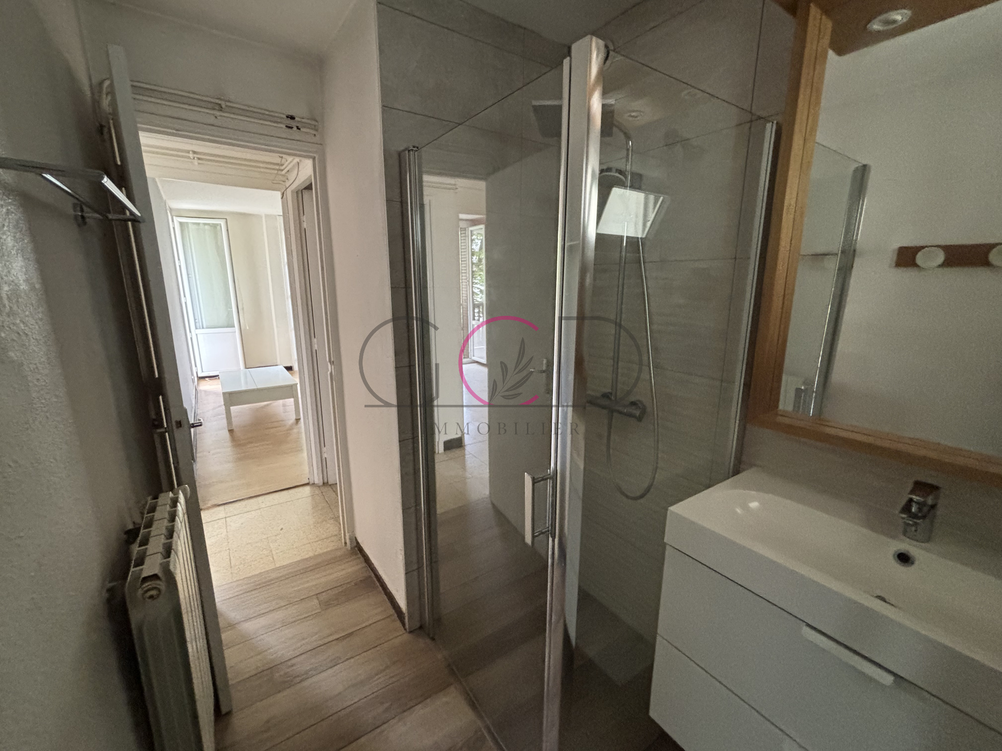 Aix-en-Provence (13100)GCD IMMOBILIER vous propose en exclusivié à la location à Aix-en-Provence (Quartier Val Saint André), un appartement de type 3 loué vide de 55.45 m², situé au RDC d'un immeuble dans une résidence sécurisé. L'appartement se compose d'un hall d'entrée, d'un séjour lumineux donnant sur un balcon avec vue sur les jardins, d'une cuisine équipée et aménagée avec une loggia (avec une machine à laver), de 2 chambres, d'une salle d'eau avec une douche à l'italienne, d'un WC séparé et d'un dressing - Cave - Parking collectif - Double vitrage - Chaudière au gaz (eau chaude + chauffage) - Proximité transports et commerces.