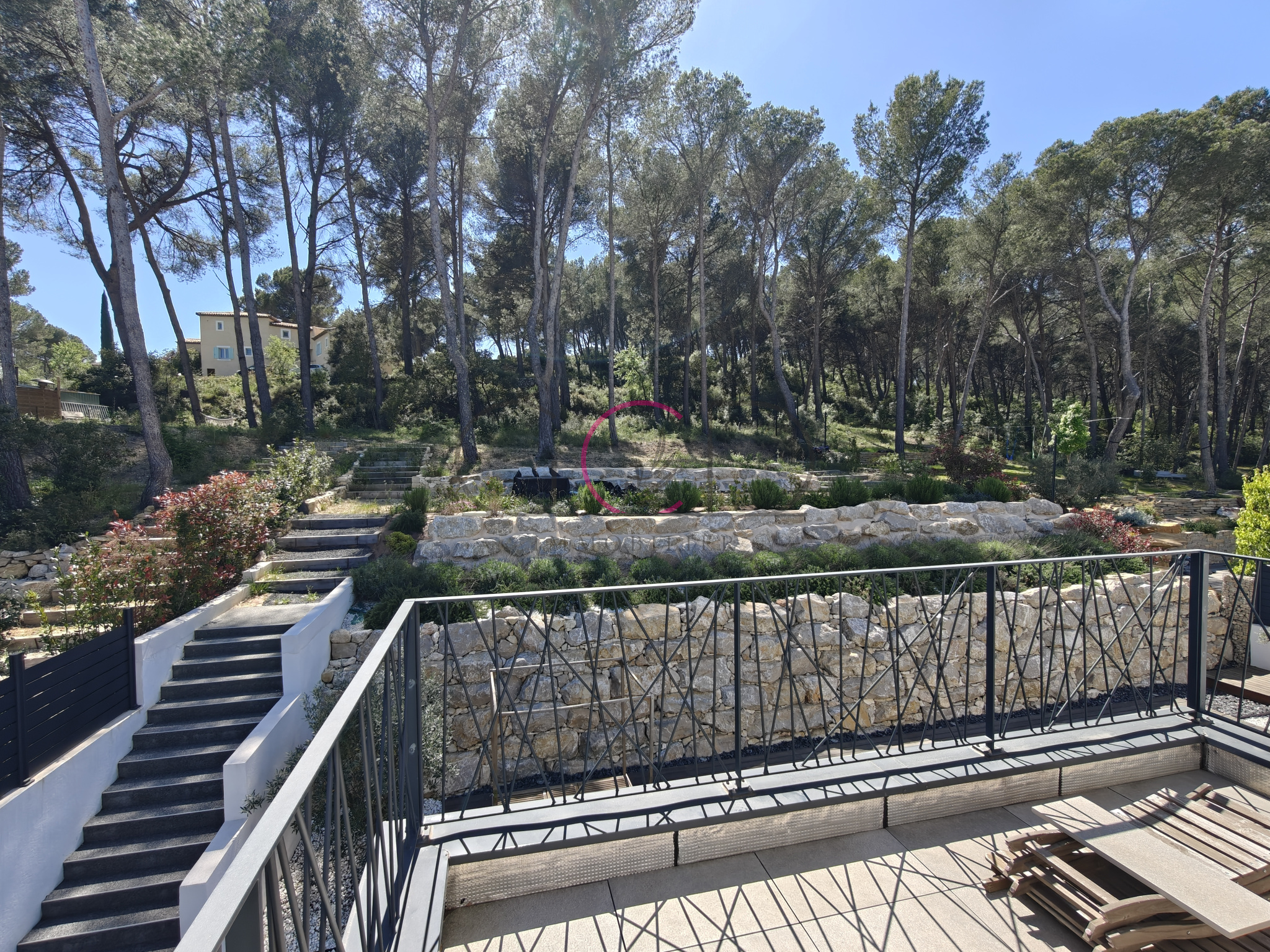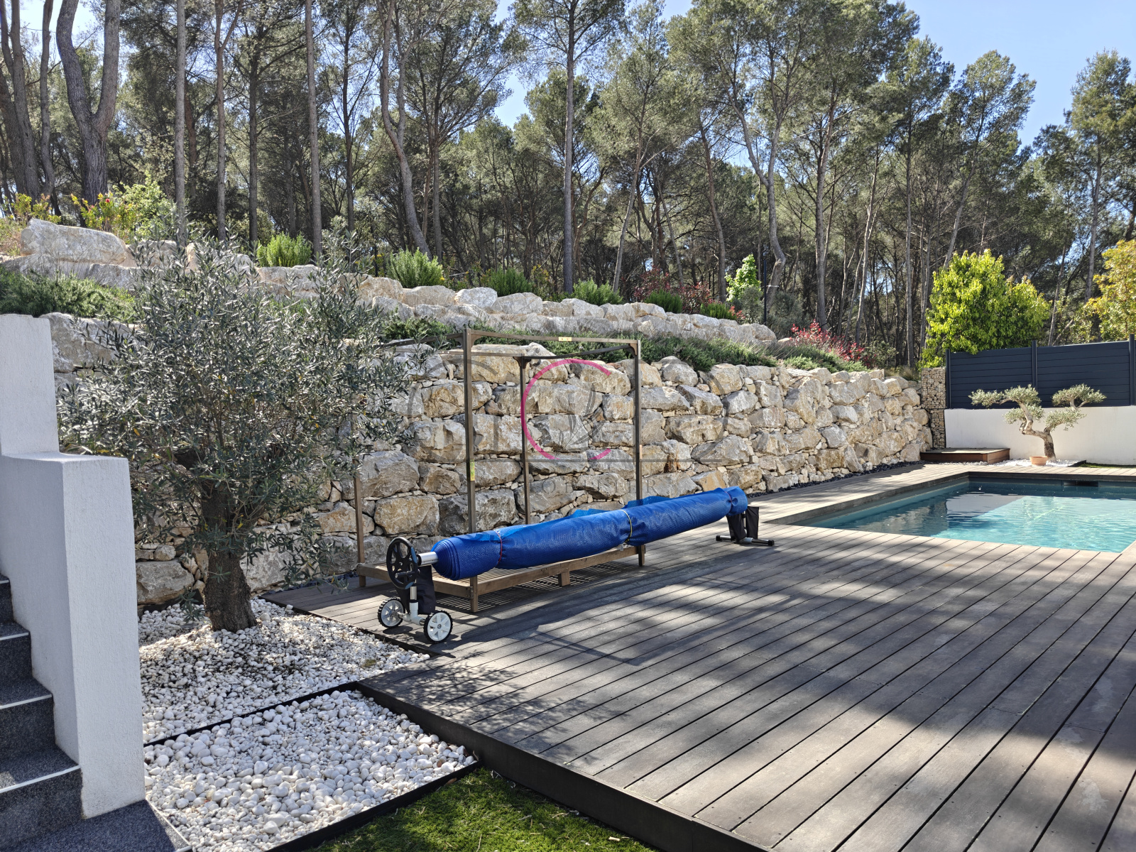 Les extérieurs ont été pensés pour profiter pleinement du climat provençal : une belle terrasse en bois accueille une piscine au sel (8 x 3,5 m) dans une ambiance intimiste. Le terrain, aménagé en restanques, offre également des espaces naturels à valoriser selon vos envies. Stationnement aisé pour plusieurs véhicules sur la parcelle et parking facile dans l'impasse.