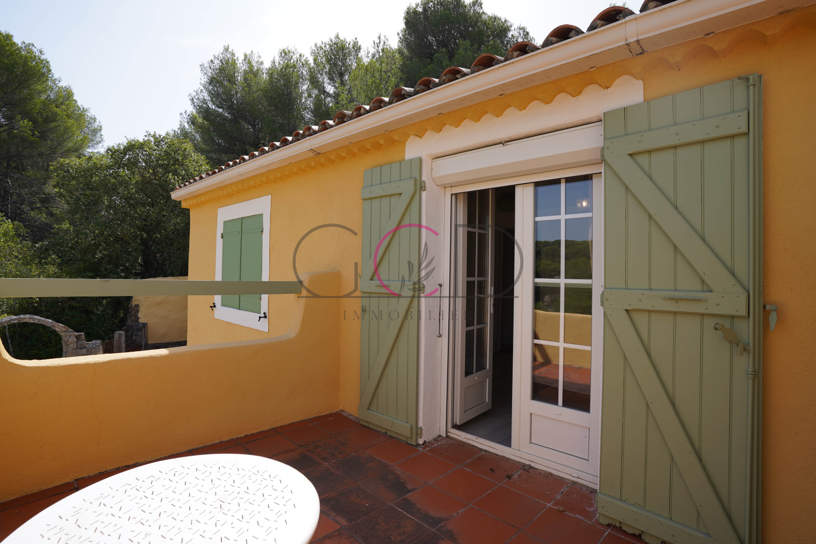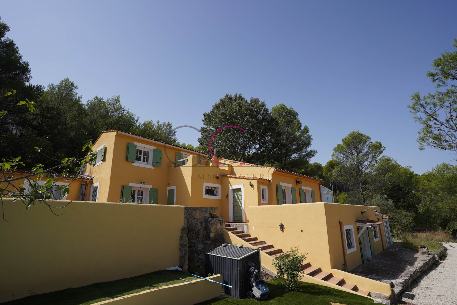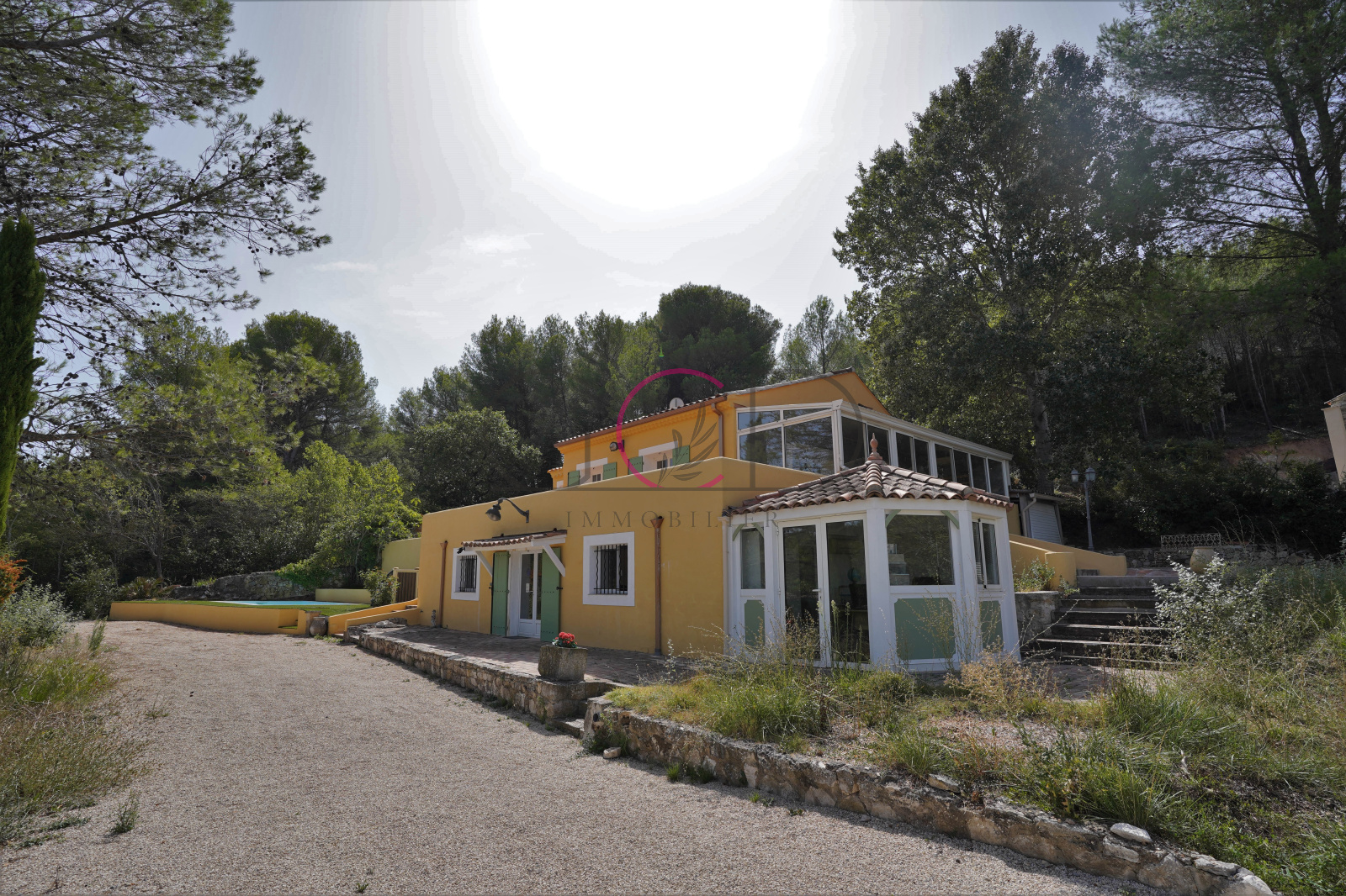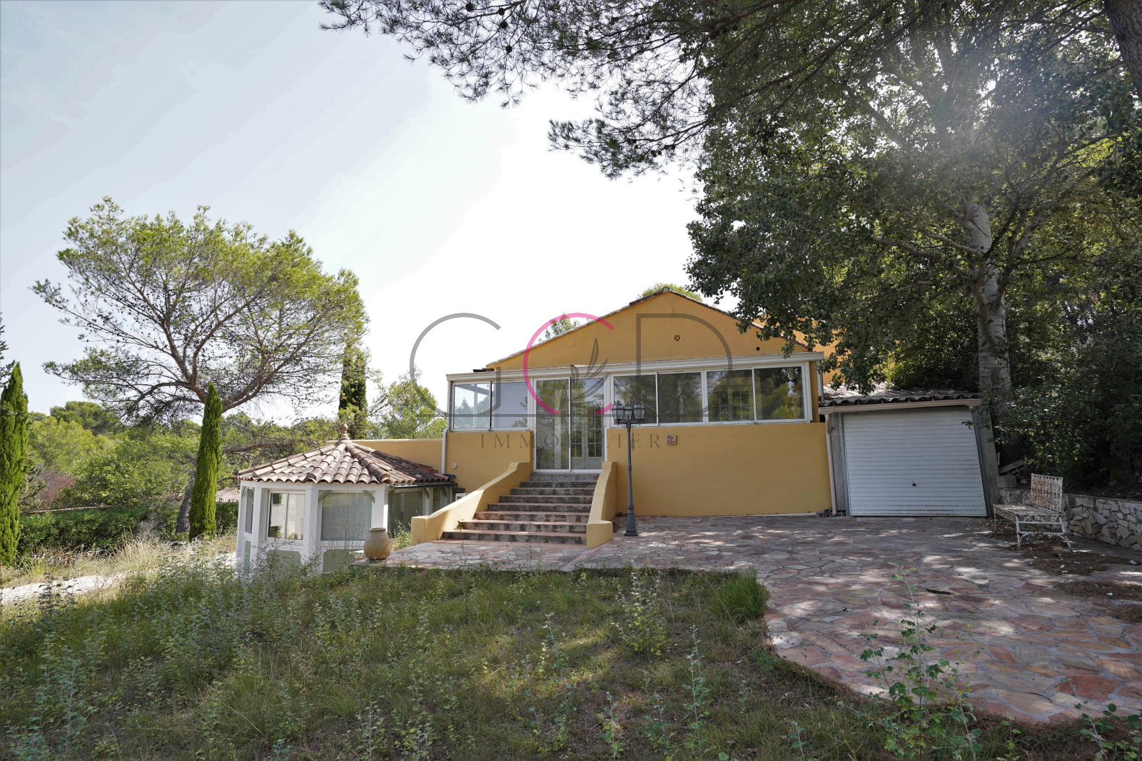 Ventabren (13122)A l'entrée de Ventabren, dominant un terrain de 1200m², maison atypique T5 de 160m² sur 2 étages + T2 indépendant de 35m² avec grand extérieur séparé + T3 indépendant sous la maison de 40m² idéal pour professions libérales avec terrasse sur terrain de 1200m² - lumineux, très grande terrasse autour de la maison.