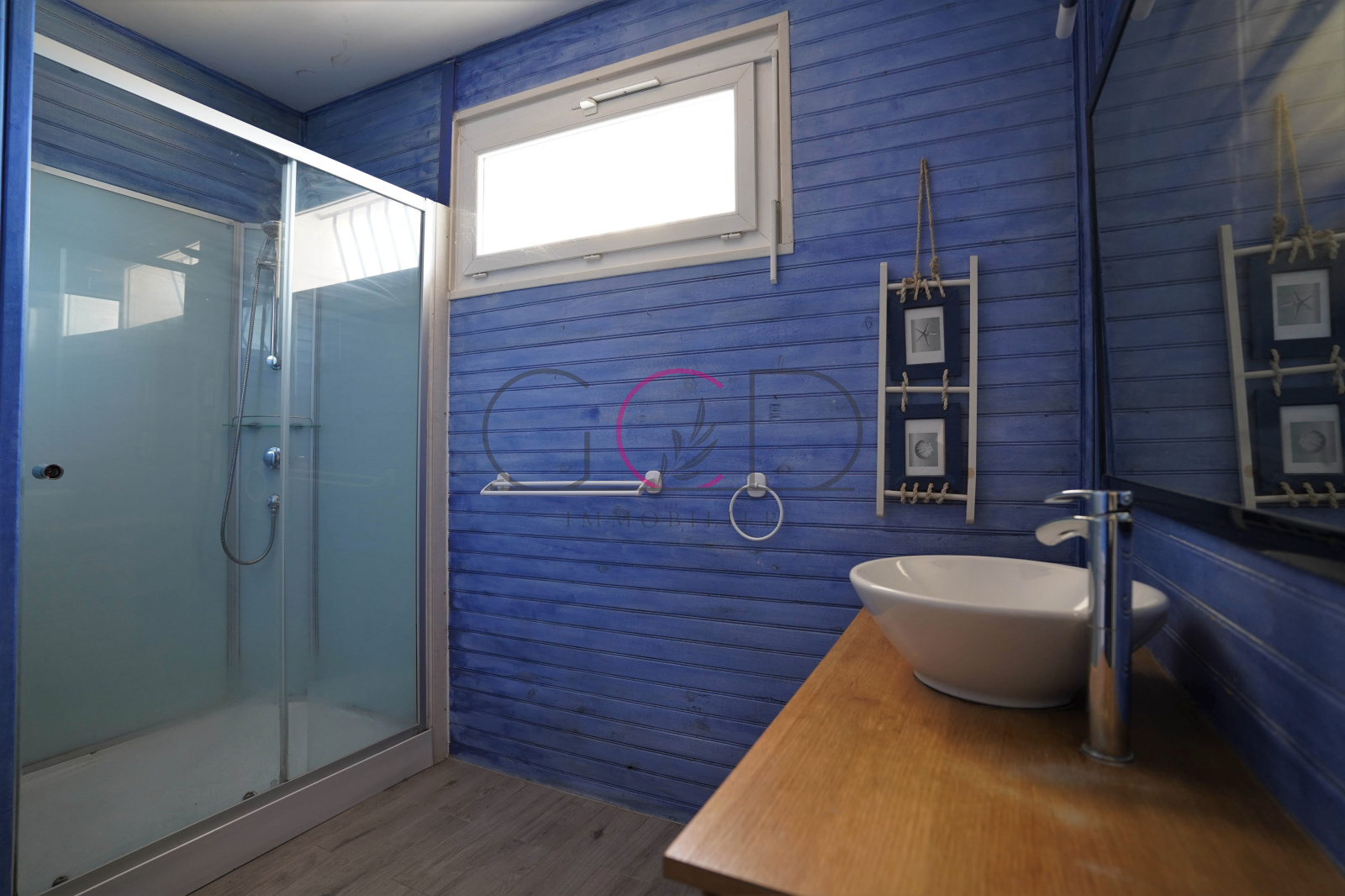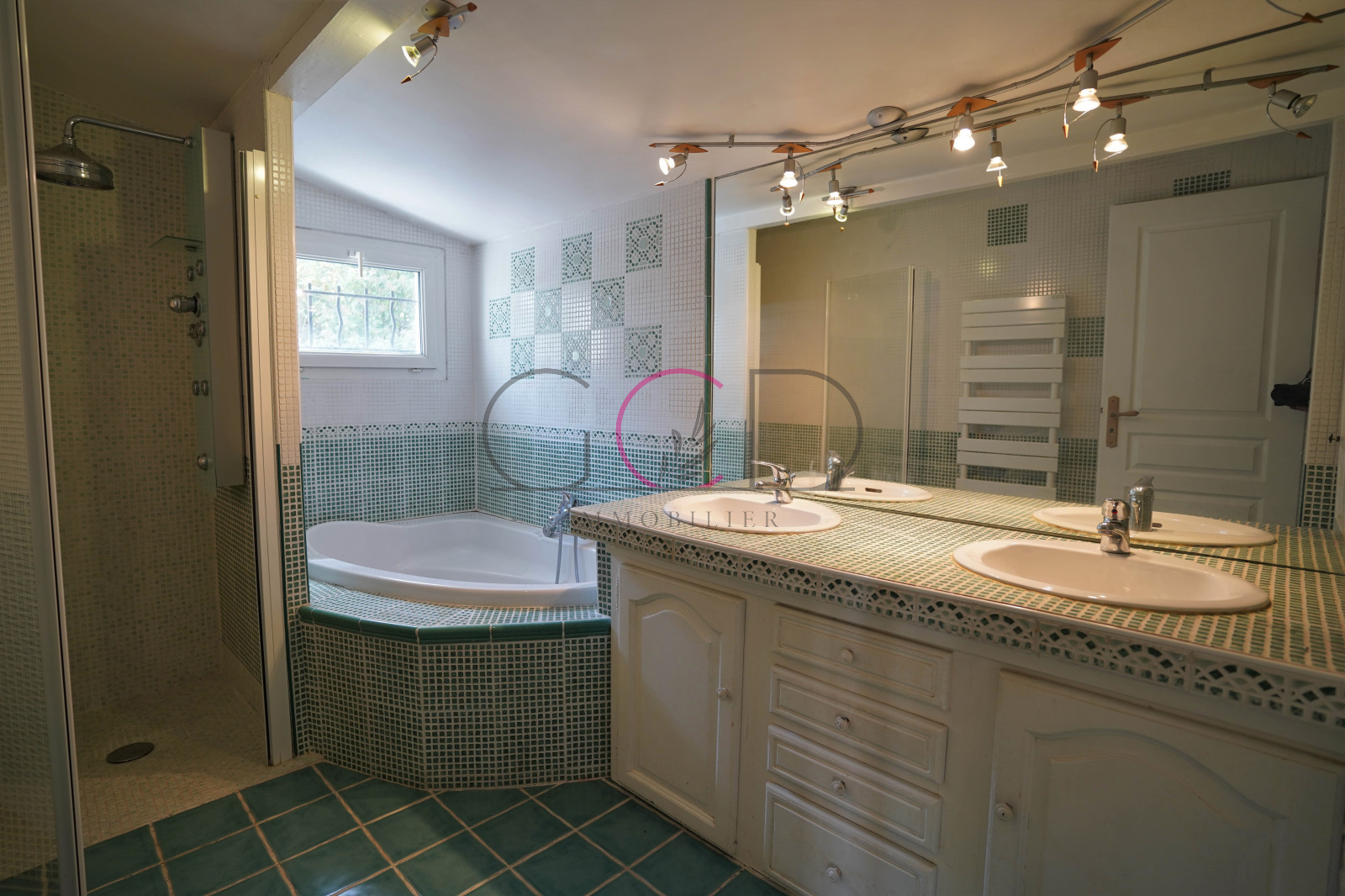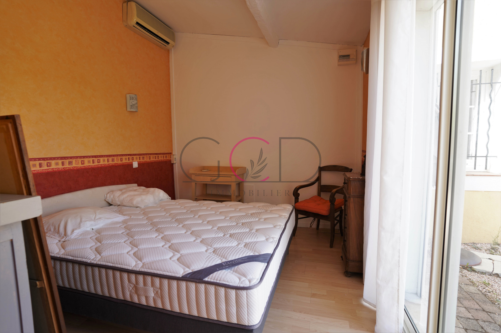 Maison principale avec en rez-de-chaussée une double pièce de vie (50m²) donnant sur une cuisine séparée très lumineuse climatisée (27m²), une chambre (13m²), une buanderie, une cave, une grande salle d'eau, un garage. À l'étage : deux chambres climatisées (13m²), une salle de bain, un dressing (8m²).