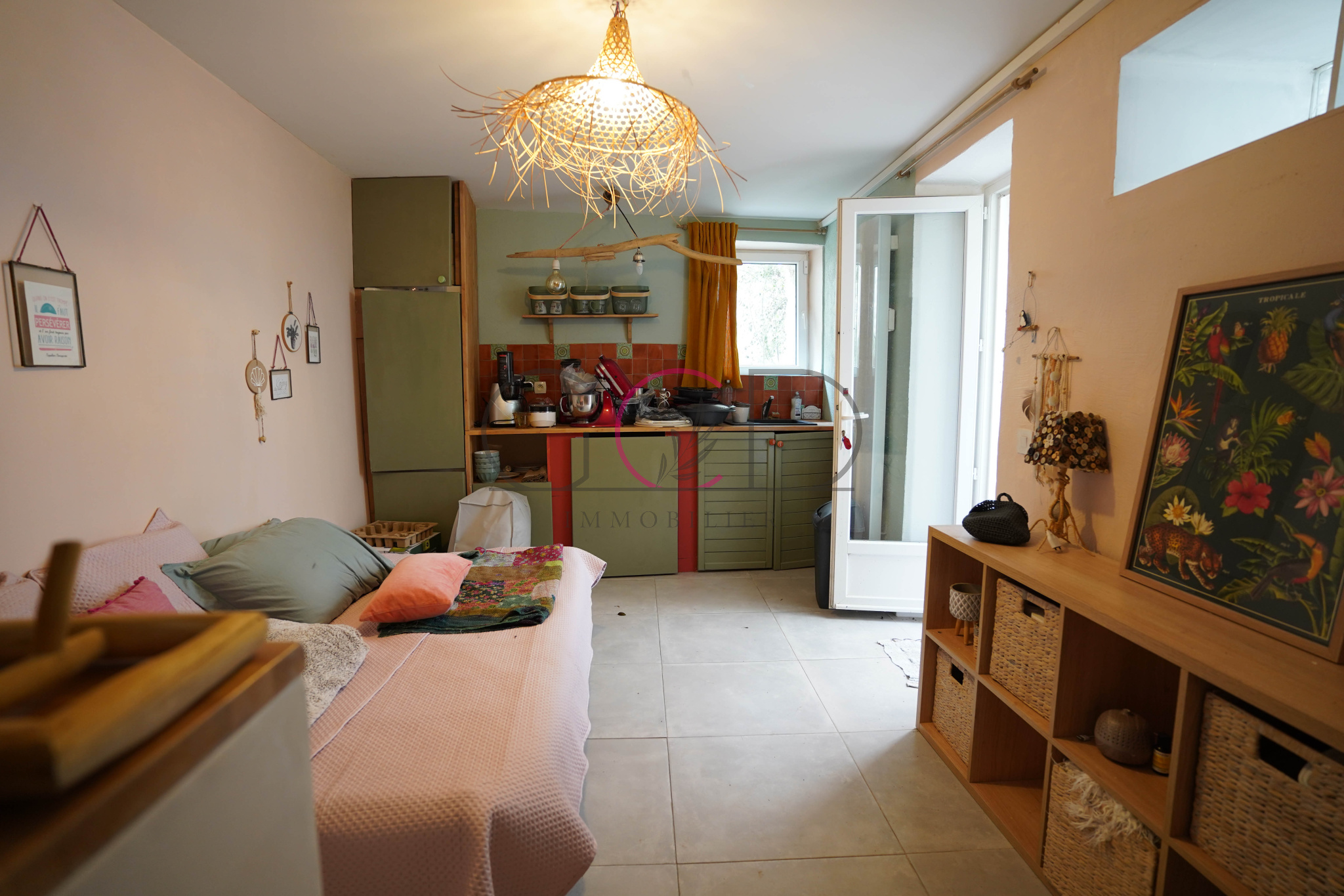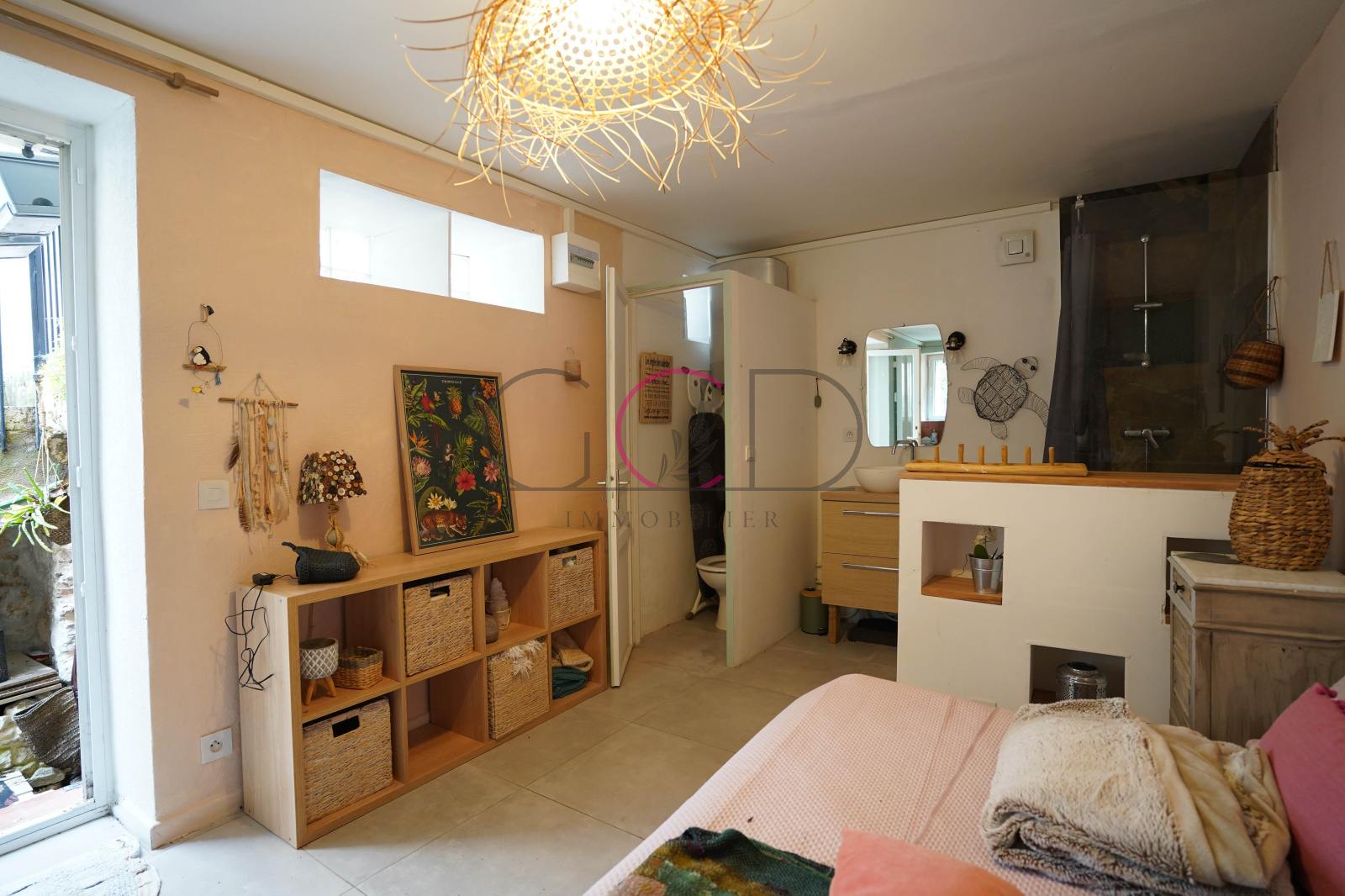 En rez-de-chaussée, un studio indépendant de 16 m² environ vient enrichir l’ensemble. Totalement autonome, il présente un fort potentiel locatif, que ce soit pour de la location classique, saisonnière ou pour recevoir famille et amis en toute indépendance.