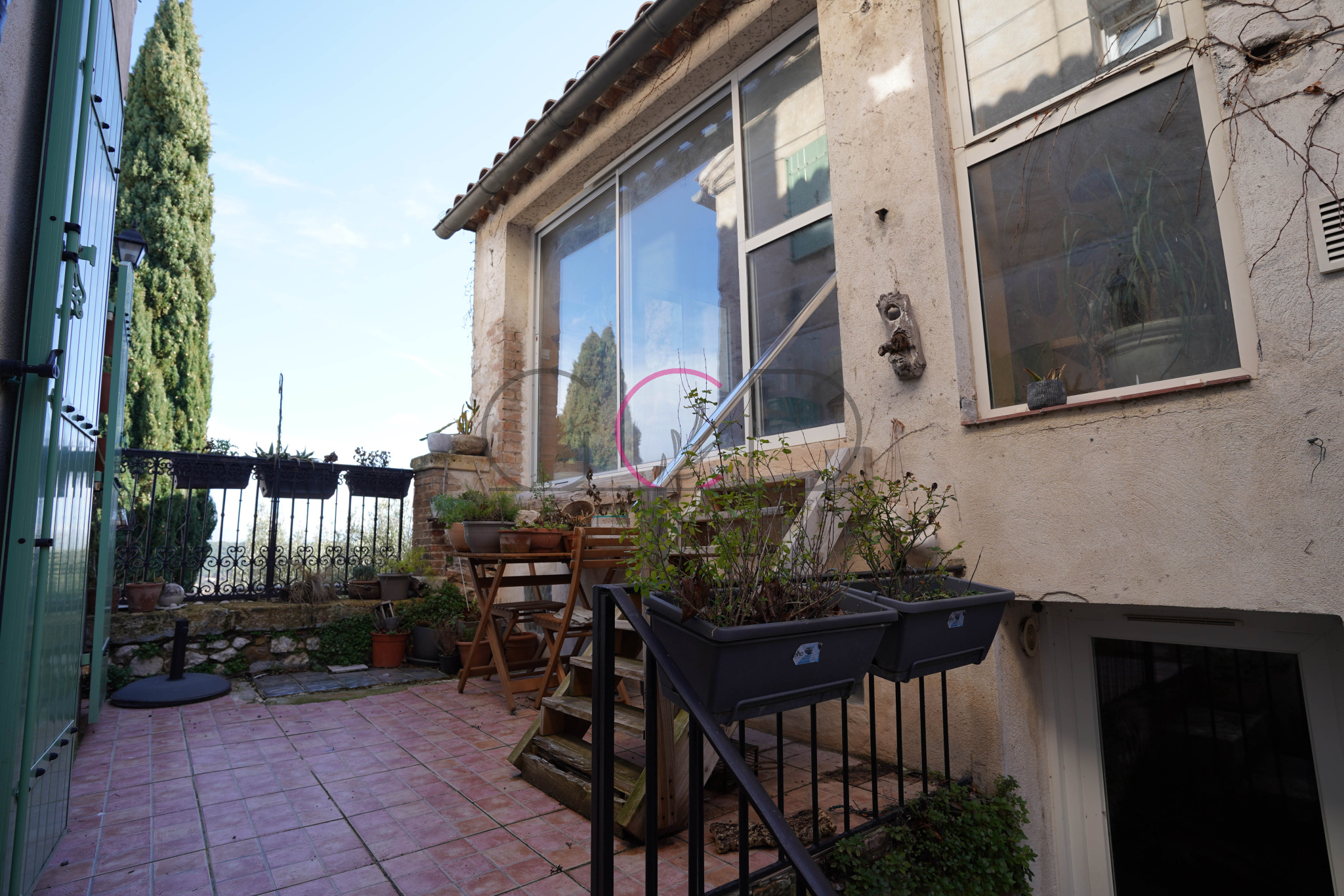 À l’extérieur, un espace d’environ 15 m² complète agréablement le bien. Il bénéficie d’une vue dégagée sur la Sainte-Victoire et donne accès à une cave voûtée, idéale pour le stockage ou l’aménagement d’un espace supplémentaire. Depuis cet extérieur, on accède à un atelier d’artiste vitré de 20 m² environ en hauteur, baigné de lumière, offrant un lieu inspirant pour la création, le télétravail ou une pièce de loisirs.